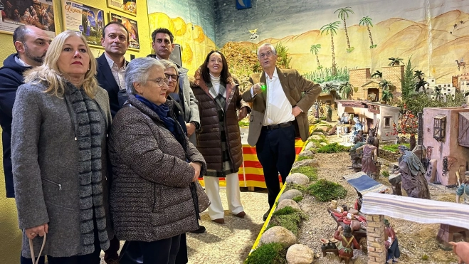 La consejera de Bienestar Social y Familia, Carmen Susín, ha visitado el nacimiento de este municipio de Peralta de Alcofea, acompañada por el alcalde de esta localidad, Sergio Gambau, el responsable del belén y de la asociación de vecinos San Gil, Arturo López Montes, y el presidente de la Comarca del Somontano, Saúl Pérez, entre otros representantes públicos, colaboradores y vecinos.
