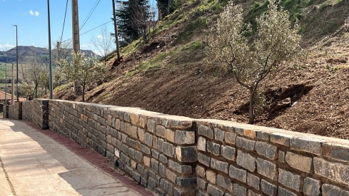 Una parte fundamental ha sido la revegetación del área afectada con especies autóctonas que contribuyen a reforzar el suelo y restaurar el ecosistema local. Tras el acondicionamiento de la ladera, se han plantado 5 olivos, 5 cipreses, 35 arbustos (boj, romero y tomillo) y numerosas plantas rastreras, en este caso, hiedra. Estas últimas desempeñan un papel clave, ya que, a través del desarrollo de sus raíces, crearán una red natural que ayudará a fijar el terreno y frenar la erosión, una solución idónea dadas las características del talud. Asimismo, se ha realizado la poda y el arreglo del arbolado existente, favoreciendo su crecimiento y revitalizando el paisaje.
