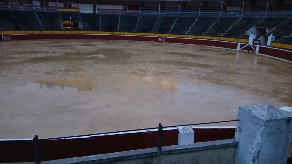 La lluvia ha querido ser protagonista en la noche del sábado al domingo y por eso ha tenido que ser suspendido el tentadero público que la Escuela Taurina Oscense había organizado. Una cita que iba a celebrarse este domingo a partir de las 10:00 horas donde se iban a tentar seis becerras de las Hermanas Marcén por varios alumnos de la Escuela. El ruedo, a todas luces impracticable, se encuentra en estos momentos lleno de agua.