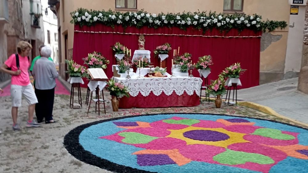 Las alfombras del Corpus se han convertido con el paso de los años en un evento imprescindible para el municipio, en una tradición importante para los vecinos y uno de los más importantes reclamos turísticos. “Es importantísima. La demostración de un bien que nos diferencia de otros pueblos. Es una tradición de tantos años que la hemos hecho ya muy nuestra y los vecinos se vuelcan en ayudar. Estamos contentos de lo que se ha logrado, una jornada que además atrae gente a Tamarite y eso implica que haya vida para bares y restaurantes”, recalca Carmina Balague, una de las voluntarias que participan activamente en esta actividad.