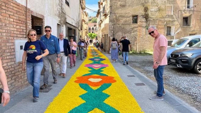 Las alfombras del Corpus de Tamarite de Litera han puesto de manifiesto el empuje de una localidad que trabaja por mantener sus tradiciones, con unos doscientos voluntarios que han respondido a la llamada y apoyado para hacer realidad los diseños de los grupos de alfombristas y que este domingo fueran la admiración de todos los que han acudido atraídos por esta muestra de arte efímero.