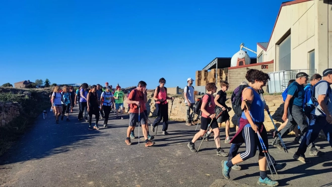 Recuperamos de nuevo el Camino Natural de la Hoya para llegar a Coscullano, entrando el grupo más o menos agrupado, produciéndose en esta localidad el primer avituallamiento líquido. Pese a llevar sólo 4 kilómetros, los participantes se acopian de agua en previsión porque a continuación viene lo mas duro de la jornada.