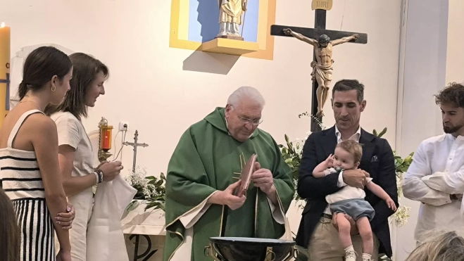 Con los sones del grupo folklórico de La Hoya en los momentos marcados de la celebración, la incorporación a la comunidad cristiana de Tomás de Orante estuvo impregnada de las sabias palabras de Rafael Samper, que incluso mentó al seleccionador nacional, Luis de la Fuente, cuando respondió a una pregunta de un periodista sobre la "superstición" de santiguarse, a lo que replicó: "Esto no es superstición, es fe". Pidió a los padres que condujeran al nuevo cristiano por la senda de la virtud hasta que la asuma por su propia consciencia.