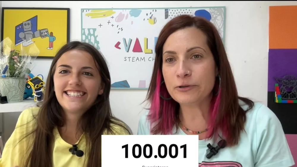 Valeria y Patricia, Patricia y Valeria, ya han alcanzado los 100.000 suscriptores en Youtube con la cuenta de Valpatsteam, la asociación sin ánimo de lucro encaminada a promocionar las vocaciones tecnológicas, matemáticas científicas e ingenieriles desde su base en Minivinci, que no pasa inadvertida como lo demuestra la cantidad de reconocimientos que están recibiendo.