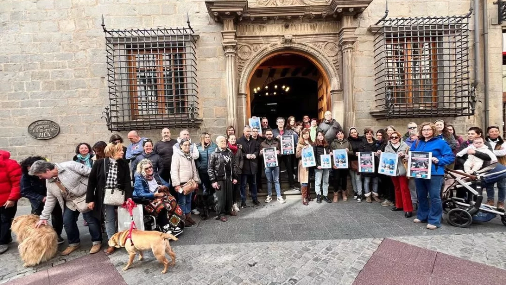 Veterinarios y propietarios de mascotas se han manifestado en la puerta del Ayuntamiento de Jaca "por la sanidad de los animales y la dignidad de nuestra profesión", en respuesta al Real Decreto que establece el control de las prescripciones de antibióticos a animales de compañía.