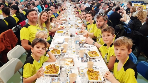 Además de las caminatas, con tres rutas para elegir, otro de los incentivos de la propuesta es la comida popular en el pabellón de Ayerbe, donde se han reunido 850 personas en un ambiente celebración, con la actuación previa de Los Peludos. Como en la jornada del sábado, la organización del Club Deportivo Padelante y el Ayuntamiento de Ayerbe ha sido clave para garantizar el éxito del evento, con el apoyo indispensable de los voluntarios, además de Protección Civil, Cruz Roja y Guardia Civil.