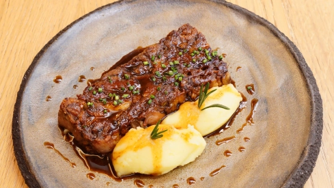 - Casa Pedro (Zaragoza): “Lingote de paletilla de Ternasco de Aragón asado con crema de patata panadera asada y guiso de setas”.