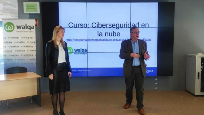 El Ayuntamiento de Huesca y la Universidad de Zaragoza han celebrado este jueves en el Parque Tecnológico Walqa una sesión informativa semipresencial sobre el postgrado “Ciberseguridad en la Nube”, con participación de la concejala de Tecnología y Administración Electrónica del Ayuntamiento de Huesca, Cristina de la Hera; y el coordinador de estos estudios y profesor de la Escuela de Ingeniería y Arquitectura de Unizar (EINA), Fernando Tricas.