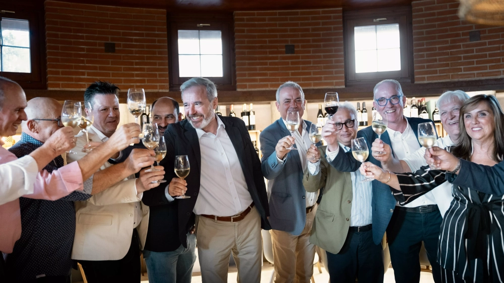 Azcón, que ha participado en una de las catas que ofrece el Festival, ha minimizado los datos coyunturales sobre las vendimias. "El secreto está en el buen trabajo. El Somontano puede tener años mejores y peores en el número kilos de uvas que se recojan, pero el trabajo que se lleva haciendo durante muchísimos años en el Somontano es lo que ha hecho que sea una marca de prestigio indudable. Ahora, que el sector del vino está sufriendo los problemas de los aranceles, de Trump y el mercado estadounidense, el Somontano por el magnífico trabajo que ha hecho puede alardear de que el 80 % sus ventas son aquí en España. Y el otro 20 % se consumen en Europa. Eso significa que la marca de calidad y el buen trabajo del producto es la garantía de éxito. Este año la cosecha será un poco mejor o peor, pero lo importante es que los viticultores de la DOP Somontano han conseguido que éste sea un éxito y que va a durar mucho más que 25 años el Festival del Vino del Somontano".