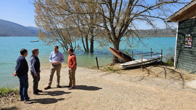 El diputado de Turismo de la corporación, Sergio Serra, ha visitado esta mañana el embalse de Barasona (Joaquín Costa) acompañado de los vicepresidentes de la comarca de la Ribagorza, José Luis Lloret y Eusebio Echart, y del alcalde de Graus, José Antonio Lagüens.