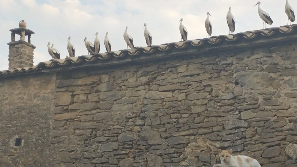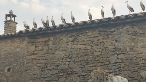 Doce cigüeñas y un gato, vigilantes del cumplimiento del centro de visitantes de Lecina