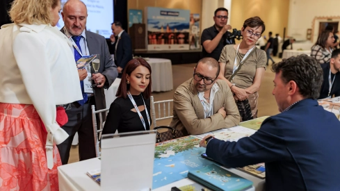 La delegación aragonesa estuvo encabezada por el director general de Turismo y Hostelería, Jorge Moncada, y el director gerente de Arex, José Antonio Vicente, y contó con la presencia de Fernando Blasco en representación de la marca “Huesca la Magia” de la DPH. Participaron también el jefe del servicio de promoción de turismo del Gobierno de Aragón, Ignacio Rodríguez; Marta Sancho y Puri Villarroya, diputada delegada de turismo y la técnico de turismo de la Diputación de Teruel; Marcos Ferrer, de Ruta Mariana-Turismo religioso; Roche Murciano y Ana Abadías, de la Confederación de Hostelería y Turismo de Aragón; Jordi Solé, de la Asociación de Agencias de Viajes receptivas y promotoras de Turismo de Aragón; Yolanda Julián, de Aramón, y Clara Bosch, de la Ruta del vino del Somontano.