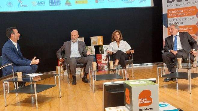 Que el turismo va a crecer de manera sustantiva en los próximos años queda demostrado por el hecho de que 9 de cada 10 trabajadores tendrán alguna relación en su desempeño con el sector en el año 2030. Es una de las expresiones que se han escuchado este jueves 20 de octubre en el salón de actos del Ayuntamiento de Benidorm, donde se ha celebrado el II Congreso Nacional de Periodismo y Turismo organizado por Visit Benidorm y la consultora Sergestur del oscense Fernando Garasa. Por el escenario, han transitado grandes profesionales de ambas actividades como Miguel Sanz (director de Turespaña), Inma de Benito, Javier García Cuenca, José Guillermo Díaz Montañés, Marian Muro, Manuel Molina, Esther Eiros, José Luis Yzuel, Fernando Valmaseda, María Frontera, Alicia Bea Ballester, Francisco José Benito, Ignacio Vasallo, Natalia Bayona, Laura Garrido, Isidro Fernández, Eva Ballarín, Elizabeth Keagan, Leire Bilbao, Nani Arenas, César Sar y Nuria Montes, conducidos por el director de EL DIARIO DE HUESCA, Javier García Antón. Mucho protagonismo oscense por cuanto, además de Garasa y el presentador, han destacado el presidente de hostelería de España (Yzuel), Fernando Valmaseda (descendiente de Jaca) y Eva Ballarín (procedente por vía familiar de Laspaúles).