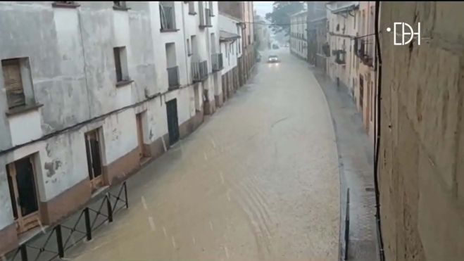 Una gran avenida de agua y piedra ha sorprendido a los ayerbenses esta tarde, con una fuerza descomunal que ha convertido las calles en un auténtico río.